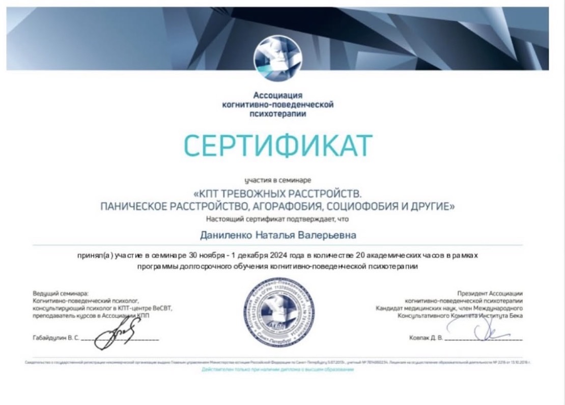 28. « КПТ тревожных расстройств. Паническое расстройство, агорафобия, социофобия и другие»