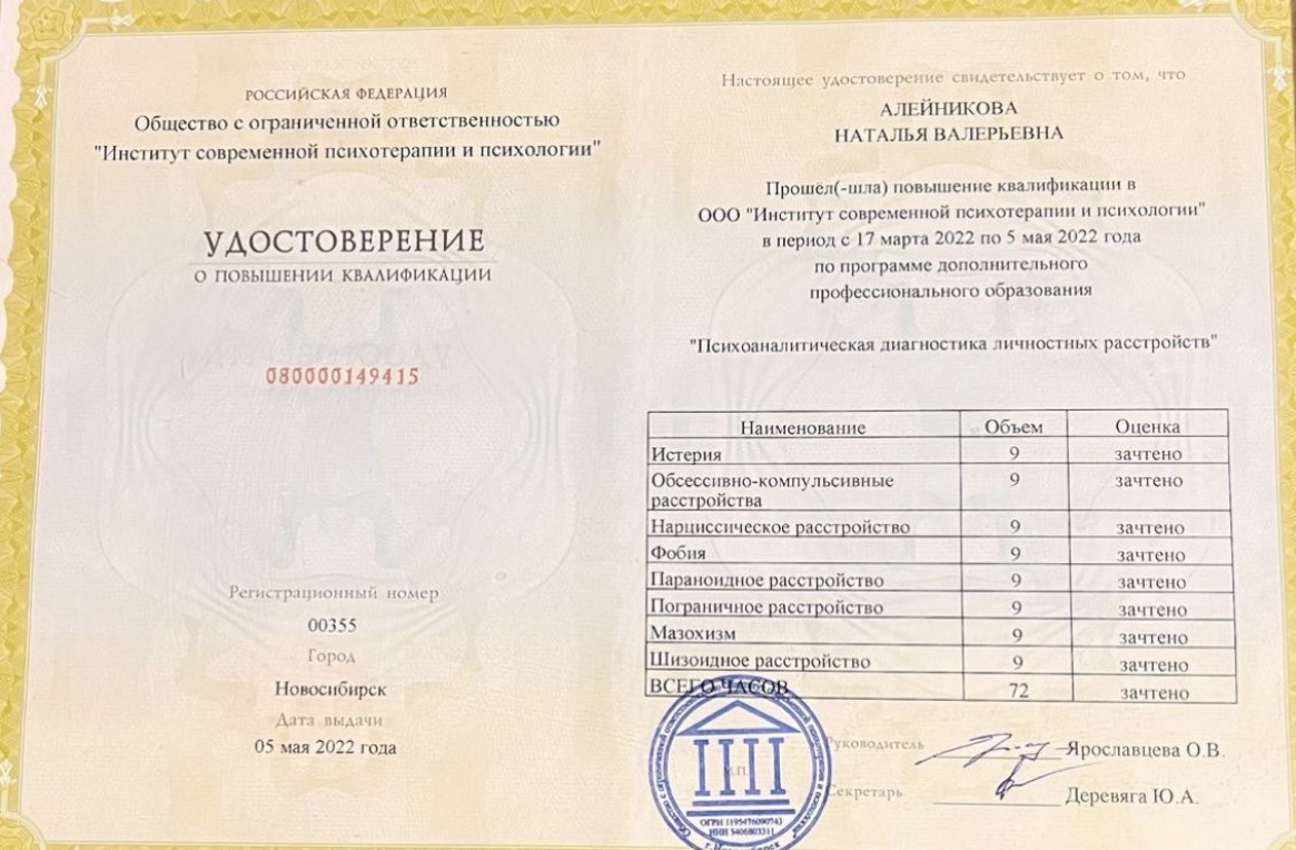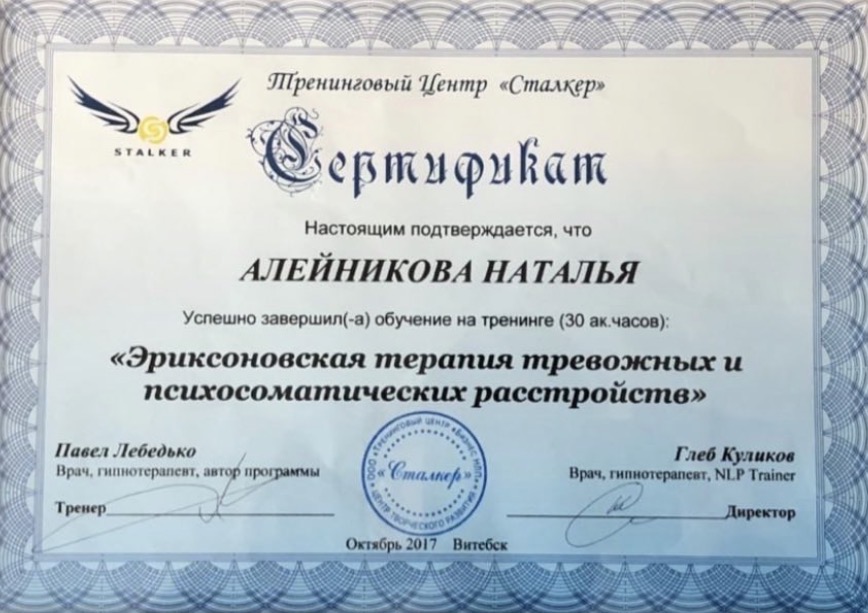 Я разрабатываю под Ваш запрос личную терапию( т.е. лечение) Терапия- это методы, техники, психотерапевтические беседы, упражнения и многое другое.